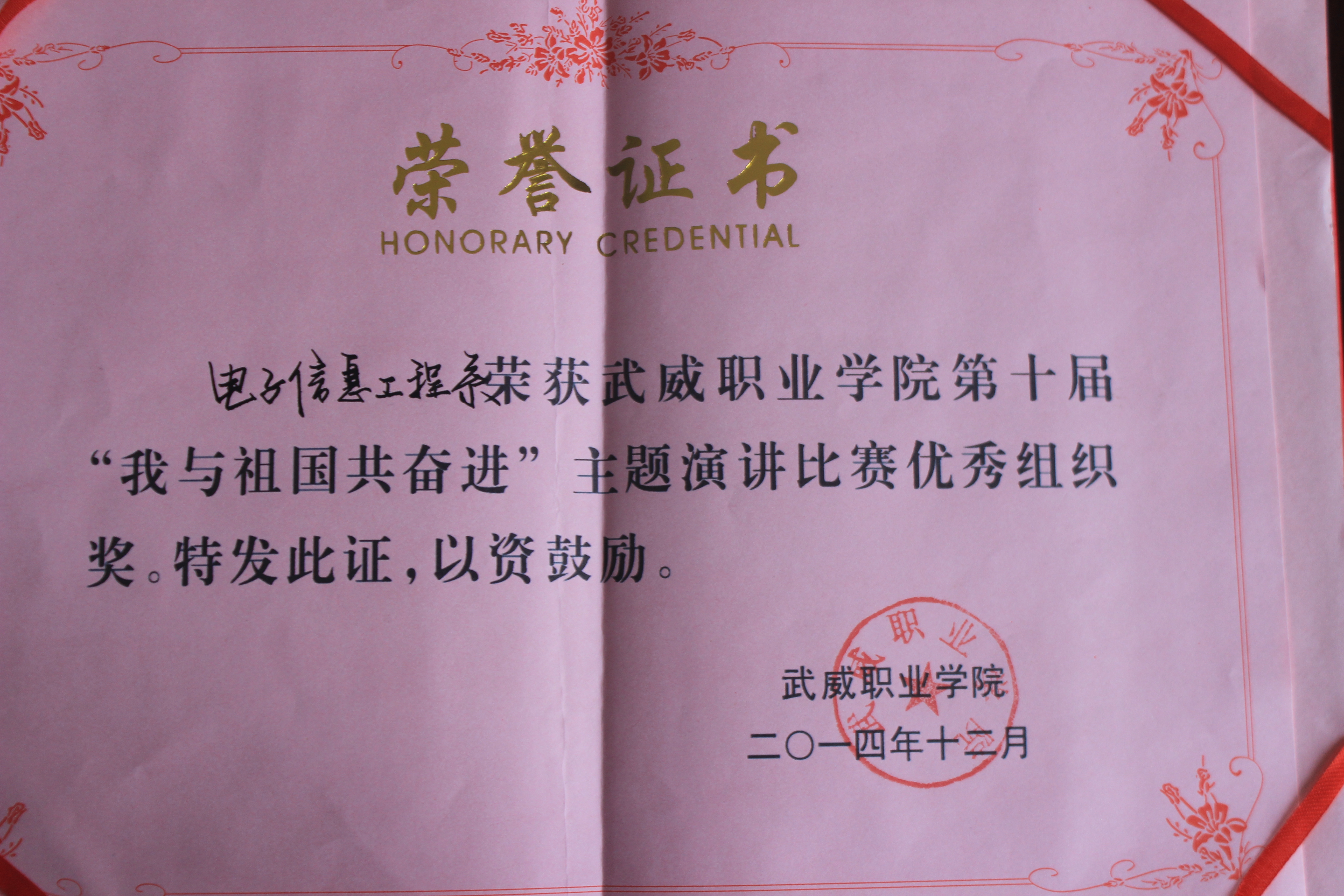 第十屆“我與祖國共奮進(jìn)”主題演講比賽-優(yōu)秀組織獎