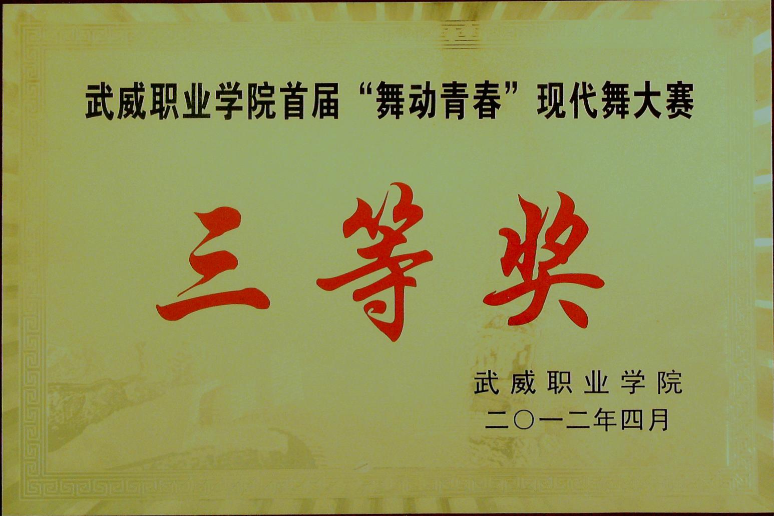 首屆“舞動(dòng)青春”現(xiàn)代舞大賽三等獎(jiǎng)