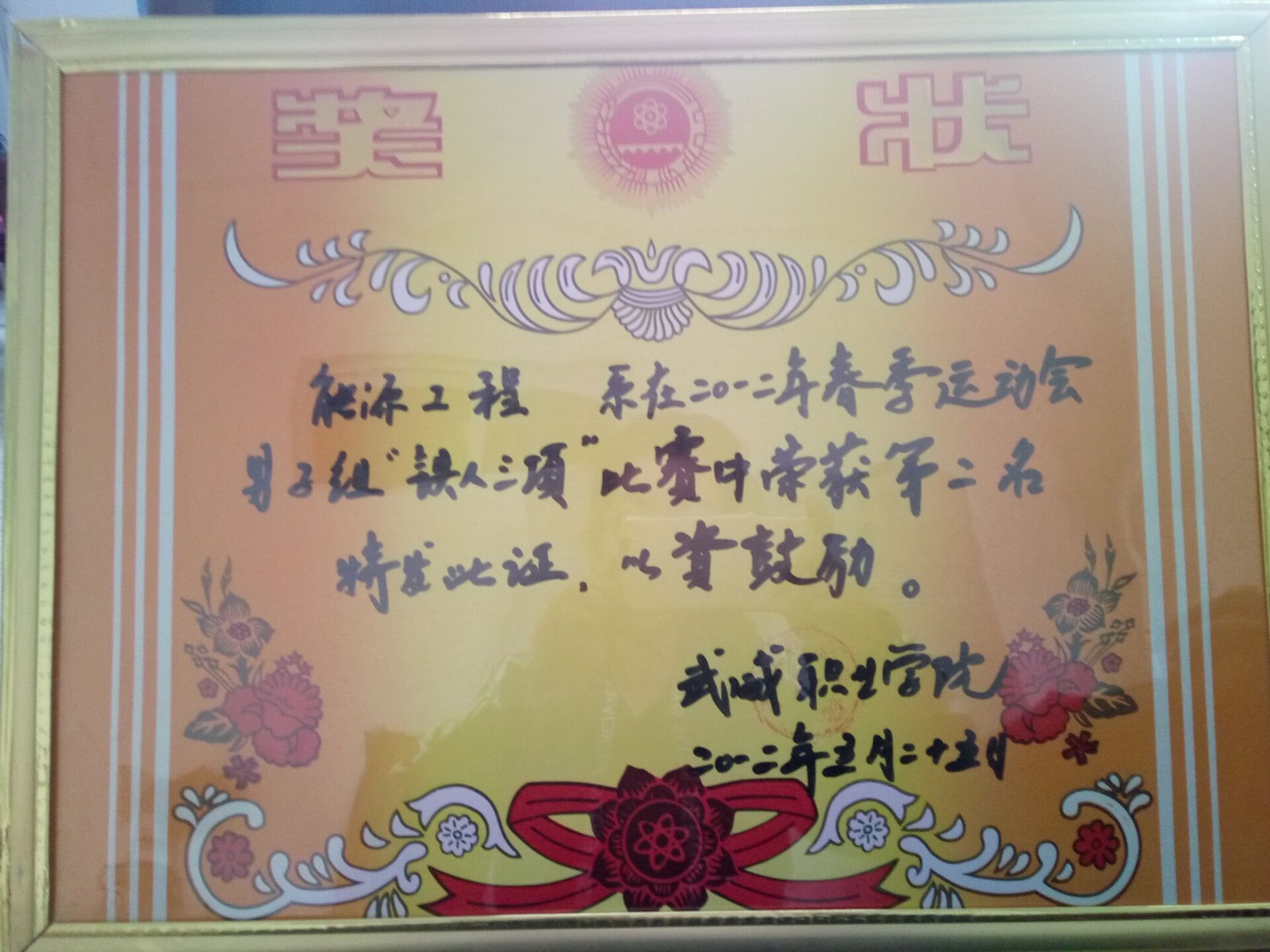 我系代表隊(duì)在2012年春季運(yùn)動(dòng)會(huì)“鐵人三項(xiàng)”榮獲第二名