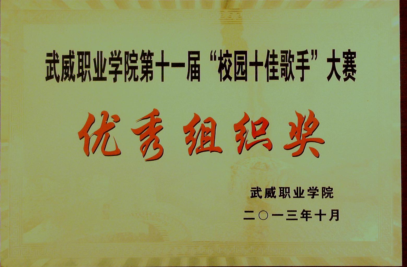 ”校園十佳歌手‘大賽優(yōu)秀組織獎