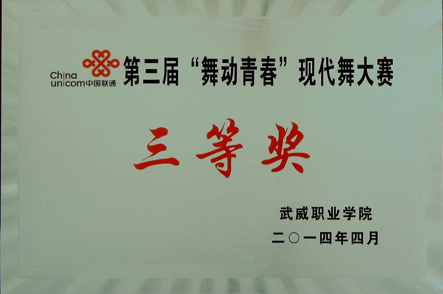 “舞動(dòng)青春”現(xiàn)代舞大賽三等獎(jiǎng)