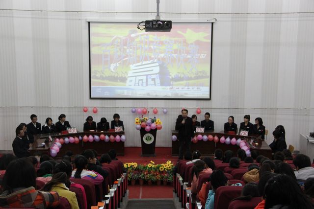 2012年11月7日晚,學院東階梯教室燈火輝煌,座無虛席。經過組委會師生的精心籌備,經濟管理系第五屆大專生百科知識競賽決賽在廣大師生的期盼中順利拉開了帷幕。學院副院長王永緒、教務處處長魏潤民、學生處處長潘從民、院團委副書記王政、經濟管理系主任邸光才、黨總支書記白玉珍及經濟管理系全體老師出席了決賽。