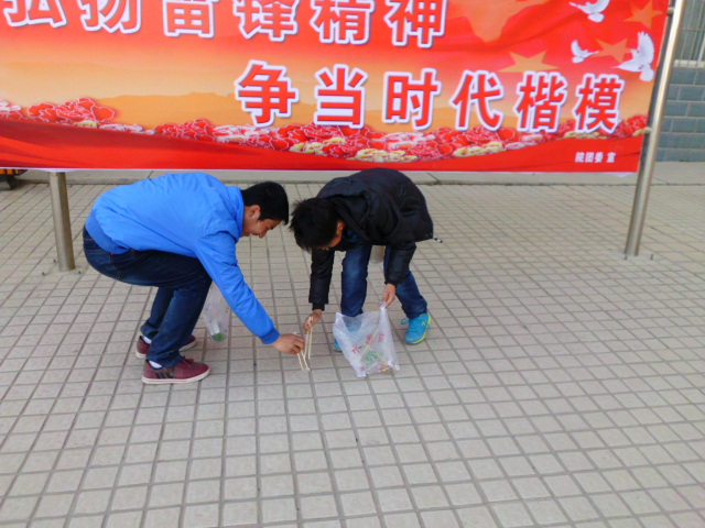 今年3月5日是毛澤東同志題詞“向雷鋒同志學(xué)習(xí)”50周年紀(jì)念日,也是第14個(gè)“中國青年志愿者服務(wù)日”。3月5日上午10時(shí),我系青年志愿者在院團(tuán)委的號召組織下,在學(xué)院中心廣場、1號教學(xué)樓、2號教學(xué)樓及南操場周圍展開了義務(wù)勞動。將馬路、花園、教學(xué)樓及操場周圍死角的紙屑、果皮等垃圾進(jìn)行了徹底清理。我系青年志愿者發(fā)揮了不怕臟、不怕苦的精神。
