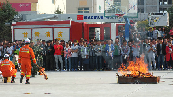 在演練現(xiàn)場,武威消防支隊的工作人員詳細講解了我院配備的ABC型干粉滅火器的性能、用途、操作方法及撲救初起火災(zāi)的注意事項,并進行了現(xiàn)場演示。2015級各新生代表組成滅火隊依照次序和規(guī)定,進行了模擬火災(zāi)的現(xiàn)場撲救演練。演練中,滅火隊員動作正確、快捷、滅火過程快速安全,觀摩的同學(xué)們也很認真。