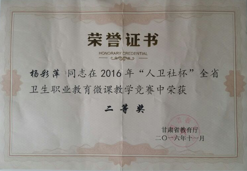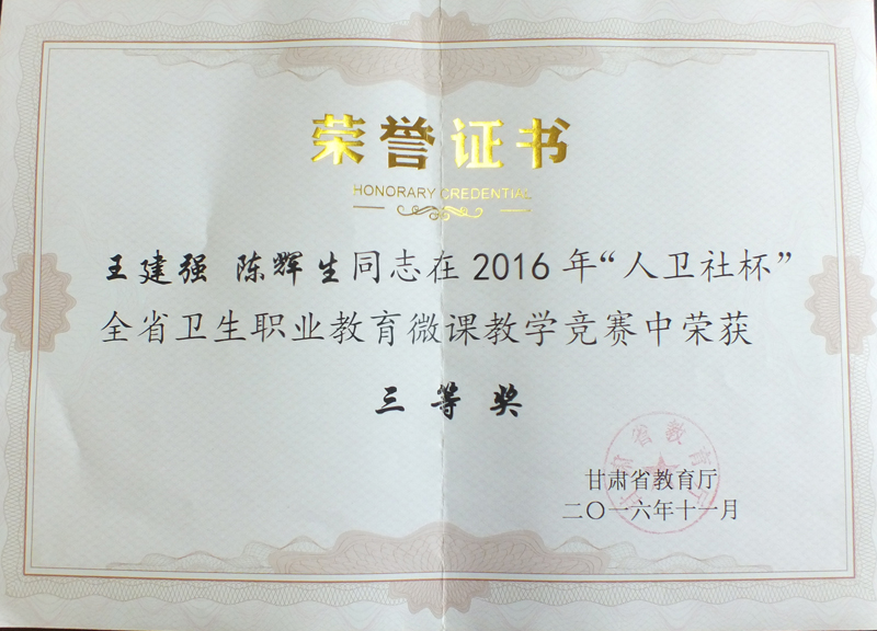 我院教師在2016年“人衛(wèi)社杯”全省衛(wèi)生職業(yè)教育微課教學(xué)競(jìng)賽中獲獎(jiǎng)