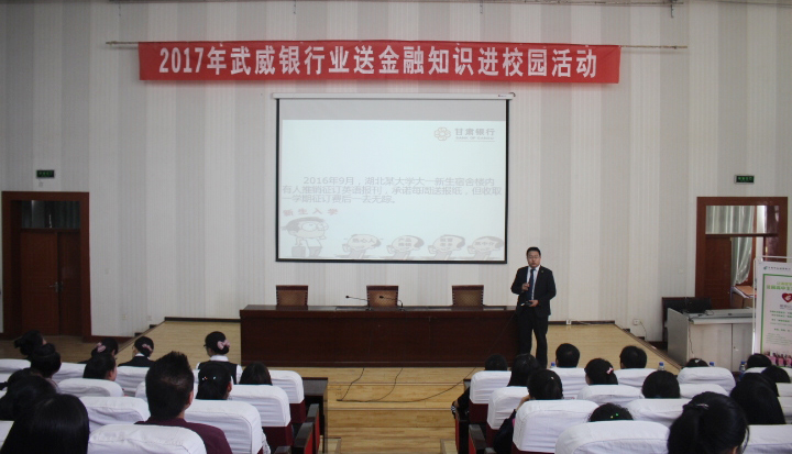 為幫助同學(xué)們了解和掌握銀行業(yè)消費(fèi)常識,增強(qiáng)科學(xué)合理使用銀行產(chǎn)品和服務(wù)的能力,提升同學(xué)們對金融業(yè)務(wù)的風(fēng)險防范和識別能力,5月11日下午,經(jīng)濟(jì)管理系與甘肅銀行武威分行、郵政儲蓄銀行武威市分行在學(xué)院正德廳聯(lián)合開展了“銀行業(yè)送金融知識進(jìn)校園”宣講活動。經(jīng)濟(jì)管理系會計電算化、證券與期貨專業(yè)的350余名同學(xué)參加了此次宣講會。