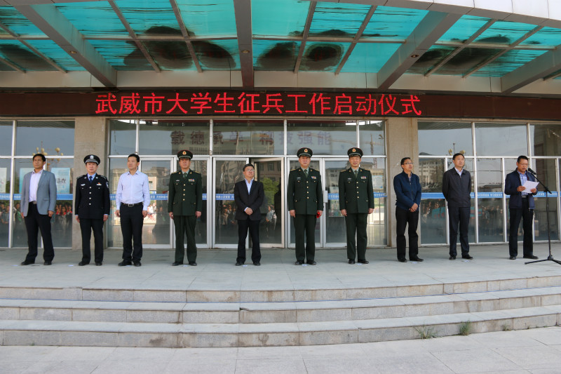5月15日下午,武威市大學生征兵工作啟動儀式在學院尚德樓北廣場隆重舉行。武威市政府副市長胡細如和武威軍分區(qū)司令員萬發(fā)中出席啟動儀式并做了講話,武威軍分區(qū)政委周小平、參謀長孫武奇,市委宣傳部副部長陳萬能,涼州區(qū)委常委、常務副區(qū)長高加志,市教育局督學張應偉、市民政局雙擁辦副主任楊光鈺、市公安局副調研員陳振亞出席啟動儀式。武威日報社、廣播電視臺的媒體朋友和我院1000多名師生代表參加啟動儀式,學院副院長王永緒主持啟動儀式。