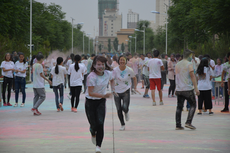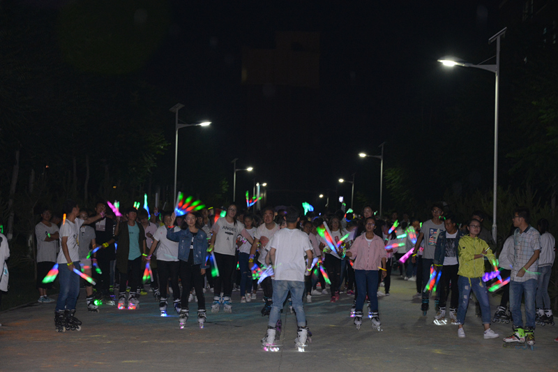 下午三點,學(xué)院團委宋文龍老師在啟動儀式上做了熱情洋溢的致辭,團學(xué)干部帶領(lǐng)參賽選手開啟了本次活動的奔跑。本次活動由“趣味沖關(guān)”“彩虹跑”“熒光夜跑”三個環(huán)節(jié)組成。“趣味沖關(guān)”由一系列小游戲組成,需要大家齊心協(xié)力、互相配合完成,同學(xué)們滿懷激情,在奔跑的同時體驗著合作的趣味與快樂。掌聲、笑聲、加油聲此起彼伏,選手與觀眾互動交流,整個過程充滿了愉悅的氣氛。下午五點開啟了整個活動中最精彩的“彩虹跑”,同學(xué)們手捧玉米粉在慢跑中相互揮灑,多彩的玉米粉在他們身上留下了青春的印記。隨著夜幕降臨,精彩的“熒光夜跑”活動隨之開始,同學(xué)們手帶熒光環(huán),舞動熒光棒,在輪滑社成員的帶領(lǐng)下繞著校園跑動。熒光點綴著夜色,歡快的音樂、青春的聲音充斥著整個校園。活動結(jié)束后,在學(xué)院東門小廣場舉行了自由晚會,同學(xué)們圍成一圈,在主持人的帶動下做互動小游戲、自由演唱,一陣陣歡聲笑語回蕩在整個校園。