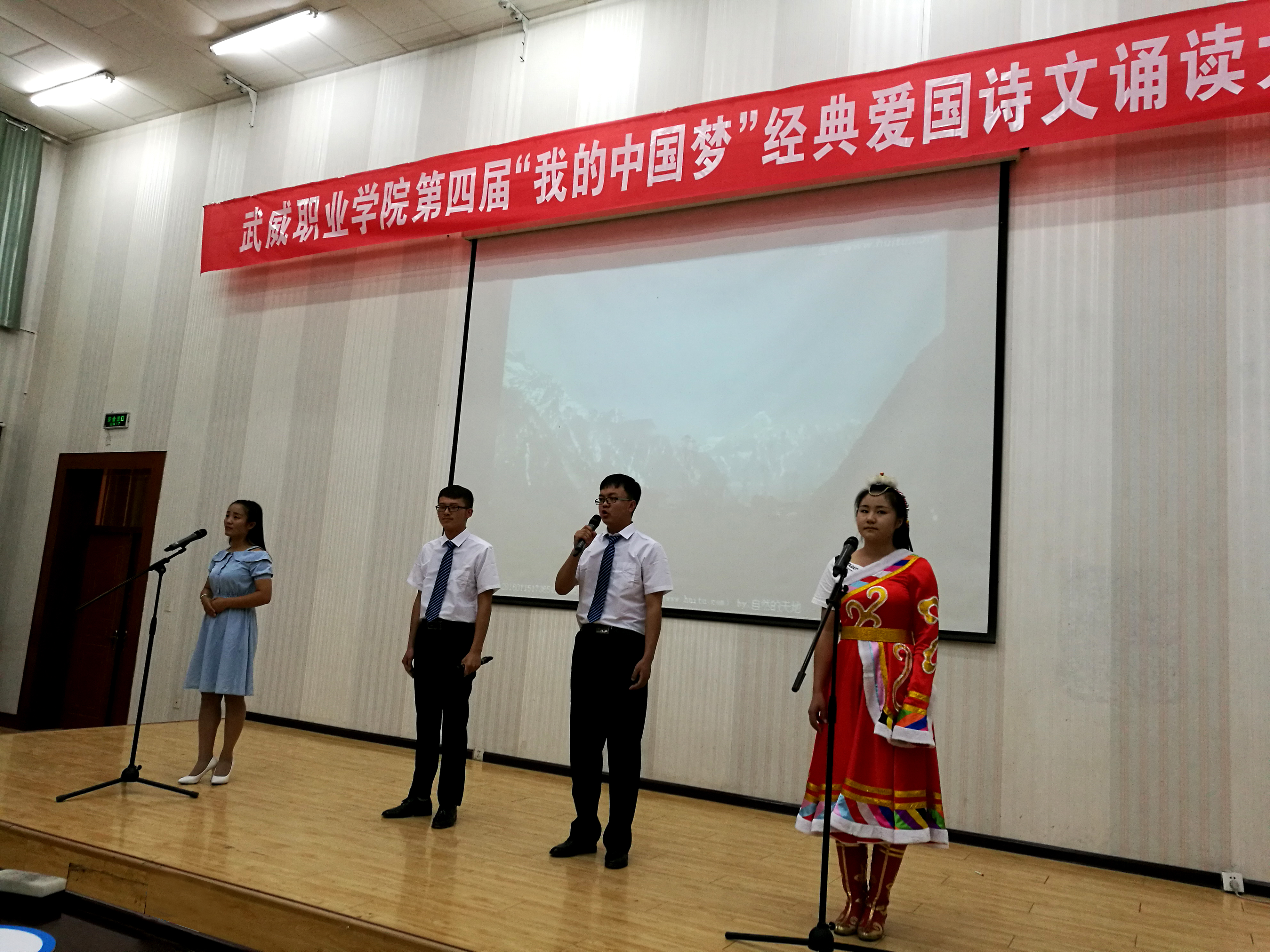 為紀(jì)念建團(tuán)95周年,深入貫徹落實(shí)高校思想政治工作會(huì)議精神, 6月8日晚,院團(tuán)委在正德廳舉辦學(xué)院第四屆“我的中國(guó)夢(mèng)”經(jīng)典愛(ài)國(guó)詩(shī)文誦讀大賽決賽。學(xué)院副院長(zhǎng)田迎春出席活動(dòng)并為獲獎(jiǎng)代表隊(duì)頒獎(jiǎng),學(xué)生工作處處長(zhǎng)王守云、工會(huì)主席金玉龍、辦公室副主任徐永生、計(jì)劃財(cái)務(wù)處副處長(zhǎng)劉文寶及宣傳統(tǒng)戰(zhàn)部、教務(wù)處、院團(tuán)委教師代表?yè)?dān)任評(píng)委,300多名師生觀看了比賽。