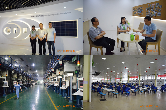 晶科能源控股有限公司是全球為數(shù)不多的擁有垂直一體化產業(yè)鏈的光伏制造企業(yè),業(yè)務涵蓋了優(yōu)質的硅錠、硅片、電池片生產、高效單多晶光伏組件制造以及光伏電站建設等領域,是目前全球光伏組件生產的龍頭企業(yè),2016年中國500強企業(yè)。公司負責人帶領考察人員參觀了公司現(xiàn)代化的生產車間、晶科商學院、員工宿舍和食堂,介紹了公司的發(fā)展情況和用人需求。在考察過程中,考察人員就公司給學生提供的工作崗位、待遇、住宿、安全管理等情況與企業(yè)負責人進行了深入交流。