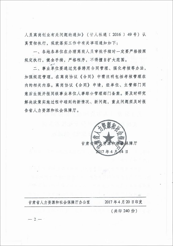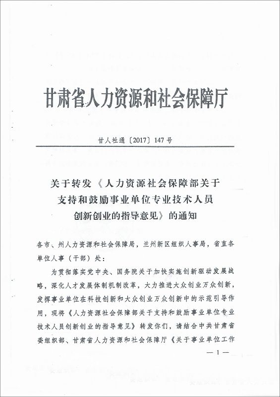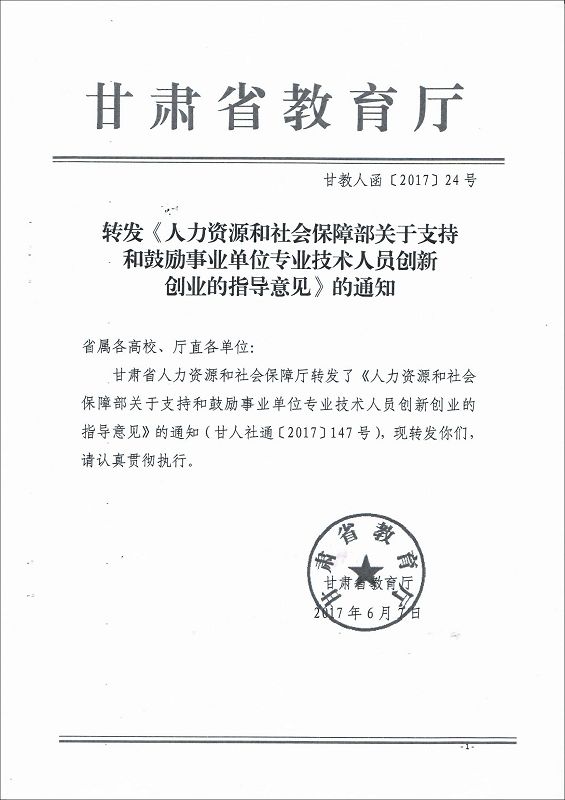 甘肅省教育廳轉(zhuǎn)發(fā)《人力資源和社會保障部關于支持和鼓勵事業(yè)單位專業(yè)技術人員創(chuàng)新創(chuàng)業(yè)的指導意見》的通知