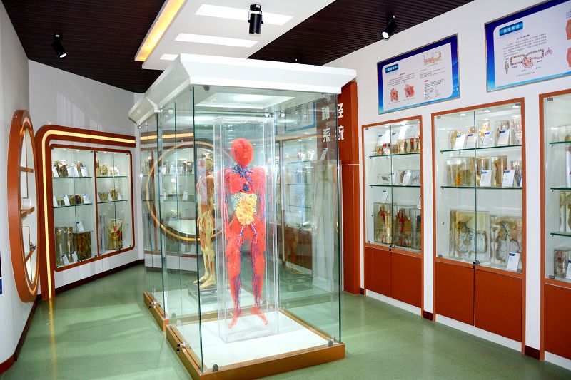 “人體生命科技館”占地210平米,共設(shè)置系統(tǒng)解剖陳列標(biāo)本266件,局部解剖陳列標(biāo)本166件,鑄形標(biāo)本31件,斷面標(biāo)本3件,護(hù)理應(yīng)用解剖標(biāo)本26件,解剖塑化標(biāo)本5件,充分展現(xiàn)了從骨骼、關(guān)節(jié)、肌肉、臟器、血液系統(tǒng)、神經(jīng)系統(tǒng)的人體各個部分,對于護(hù)理等醫(yī)學(xué)類專業(yè)學(xué)生加強對人體結(jié)構(gòu)了解起到了重要作用。