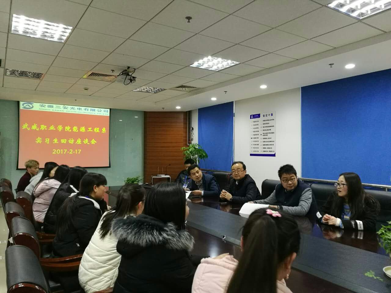 為全面掌握學(xué)生頂崗實(shí)習(xí)情況,解決學(xué)生實(shí)習(xí)就業(yè)中存在的問題,進(jìn)一步做好學(xué)生頂崗實(shí)習(xí)工作。2月14日至18日,我系黨總支書記黃文源帶隊(duì)前往福建泉州陽(yáng)光中科能源股份有限公司和安徽蕪湖三安光電科技有限公司對(duì)我系2014級(jí)頂崗實(shí)習(xí)學(xué)生進(jìn)行了回訪。