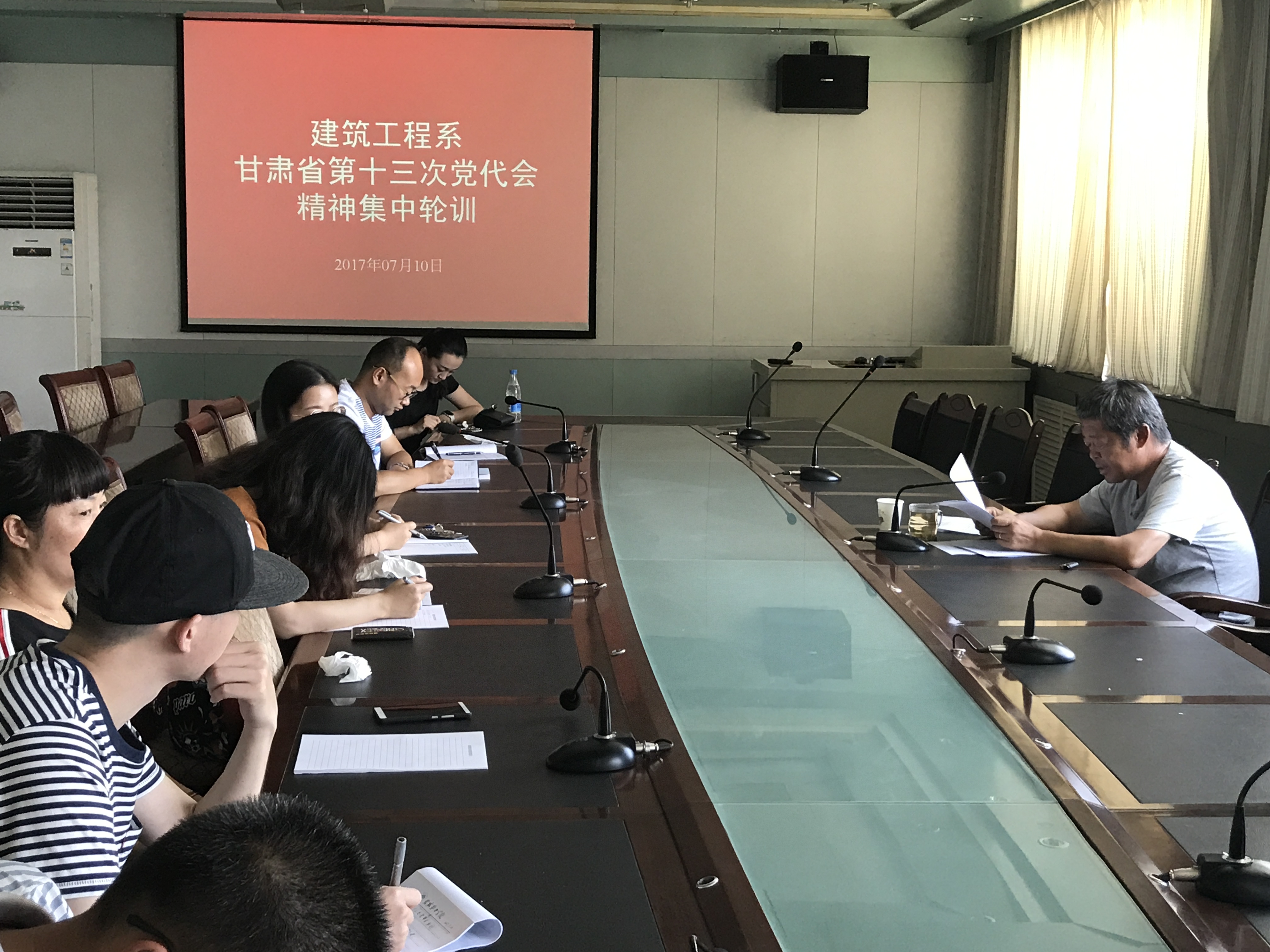 為學習貫徹落實好中國共產黨甘肅省第十三次代表大會精神和市委四屆四次全體(擴大)會議精神,根據學院黨委安排,7月10日—12日,建筑工程系黨總支組織全體黨員、專業(yè)教師17人進行了集中輪訓。