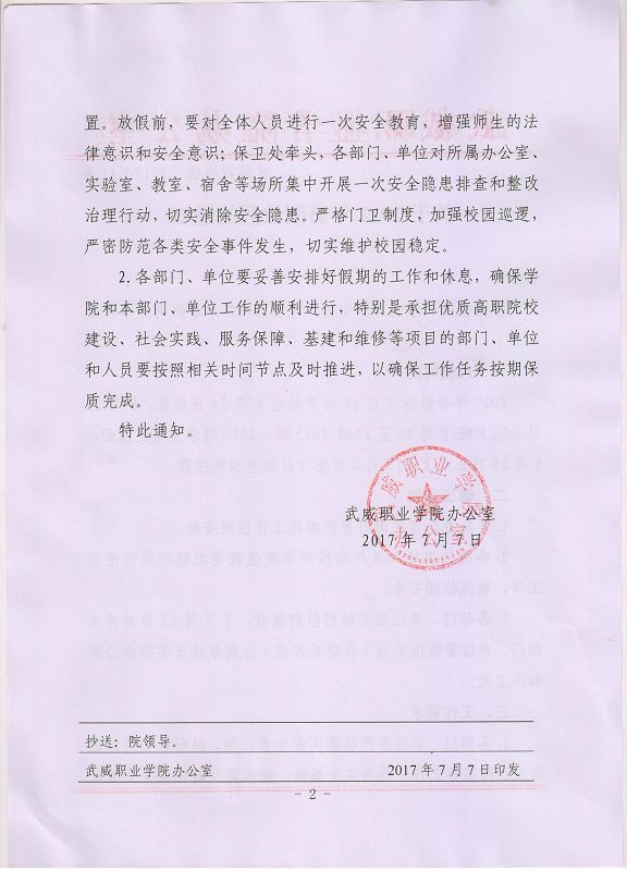 武威職業(yè)學院2017年7、8月份維穩(wěn)工作值班安排表