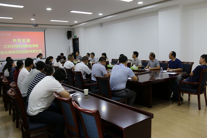 7月31日,江蘇農(nóng)牧科技職業(yè)學(xué)院副院長鄭義一行11人到我院考察交流。我院副院長王永緒、田迎春熱情接待了來賓,會議由副院長田迎春主持,學(xué)院相關(guān)部門負責(zé)人參加了交流活動。