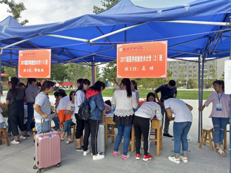 2017年,我系開設醫(yī)學檢驗技術、康復治療技術、口腔醫(yī)學技術三個專業(yè),計劃招生408人,截止目前,各專業(yè)新生實際報到372人,報到率91%,順利完成了2017級新生報到工作。
