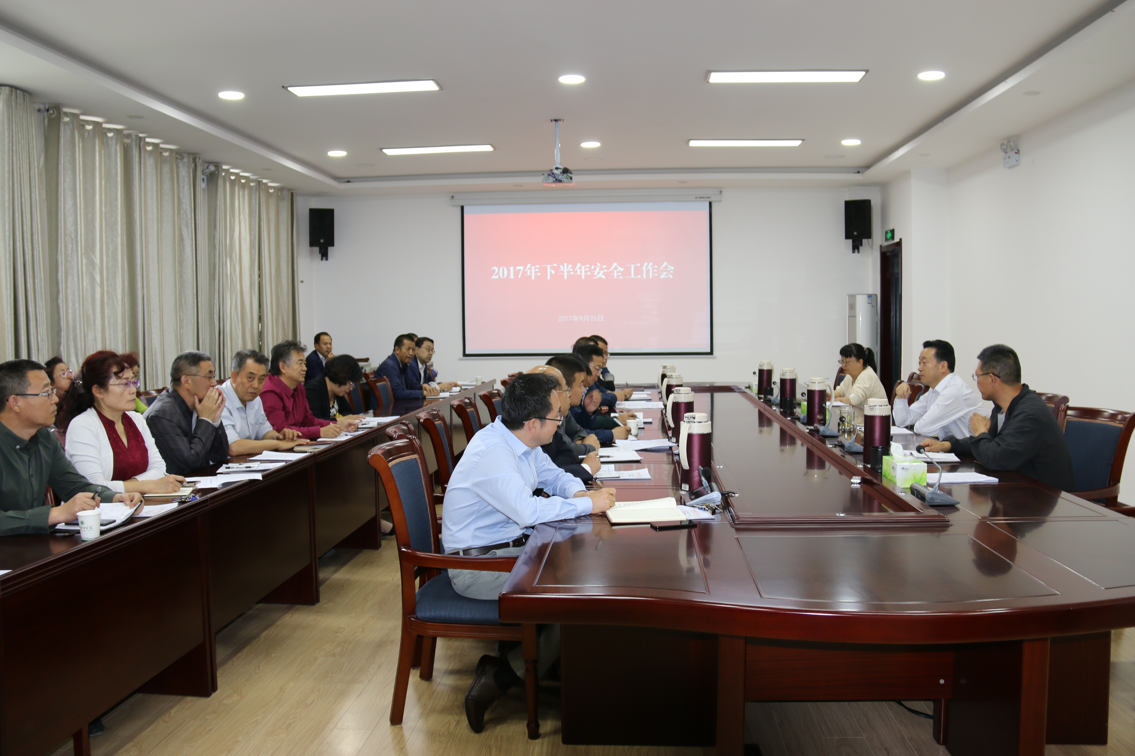 9月25日下午,學(xué)院召開2017年下半年安全工作會議,院長宗瑞謙,副院長王永緒、田迎春出席會議,學(xué)院各部門、單位負責(zé)同志參加會議。