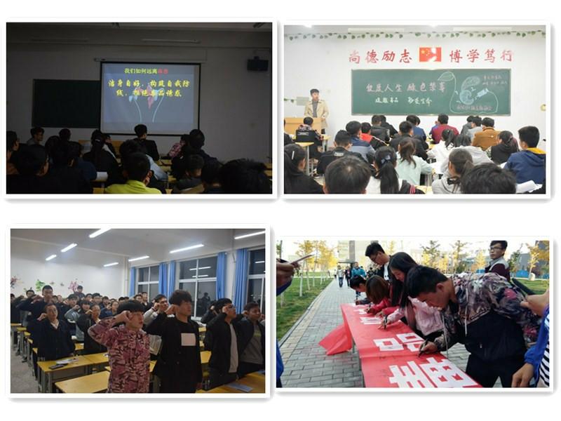 學(xué)院以引導(dǎo)學(xué)生樹立健康人生理念、創(chuàng)造綠色無(wú)毒生活為宗旨,認(rèn)真開展了毒品預(yù)防教育“五個(gè)一”活動(dòng)。10月16日晚,各班以問(wèn)答、演講、辯論、PPT等多種形式開展了以“健康人生,綠色無(wú)毒”為主題的班會(huì)并莊嚴(yán)宣誓——珍愛(ài)生命,遠(yuǎn)離毒品,堅(jiān)決禁毒;10月17日晚,學(xué)院組織同學(xué)們觀看了禁毒影視劇,并設(shè)置知識(shí)競(jìng)賽環(huán)節(jié),同學(xué)們參加踴躍;10月18日下午,學(xué)院在明德樓前舉行禁毒宣傳簽名活動(dòng),學(xué)院院長(zhǎng)董海鷹簽名并與同學(xué)們親切交談?;顒?dòng)期間,學(xué)院還開展以“健康人生、綠色無(wú)毒”為主題的禁毒征文比賽,并對(duì)優(yōu)秀作品在學(xué)院官方QQ、微信、宣傳欄等平臺(tái)進(jìn)行展示和粘貼。此次禁毒活動(dòng)宣傳形式廣泛,同學(xué)們參與度高,宣傳效果明顯。