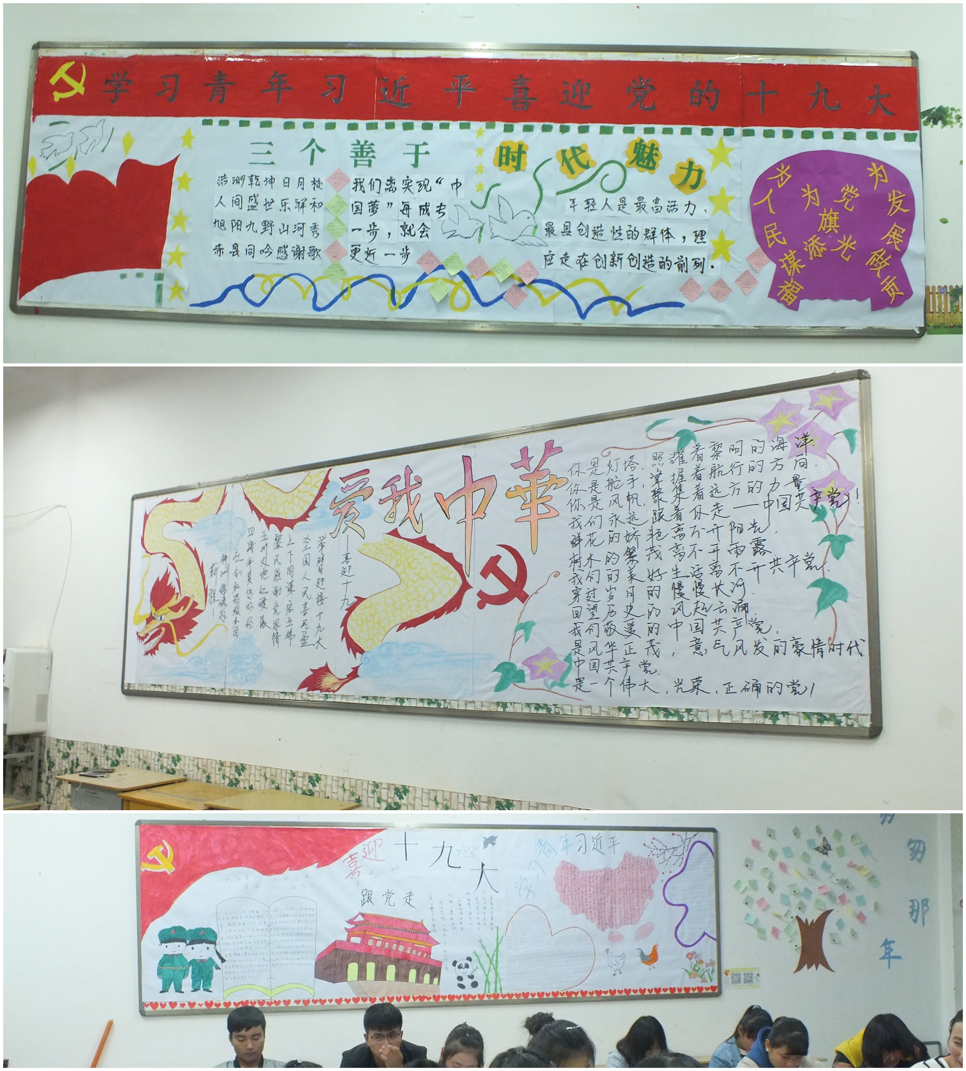 各班團支部緊緊圍繞“學習青年習近平,喜迎黨的十九大”這一主題,精心的設(shè)計,圖文并茂,內(nèi)容豐富,制作完成了形式多樣的黑板報。由系團總支對各班團支部制作的黑板報進行了檢查評比。經(jīng)過現(xiàn)場打分,最終評定16級中藥學2班、16級藥學3班和17級中藥學2班為黑板報制作優(yōu)秀團支部。