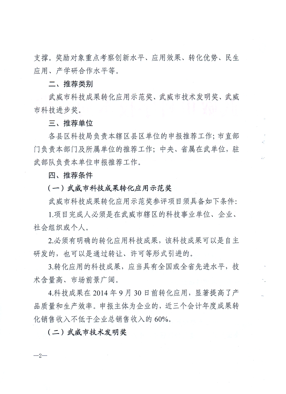 關(guān)于做好2017年度武威市科學(xué)技術(shù)獎(jiǎng)推薦工作的通知