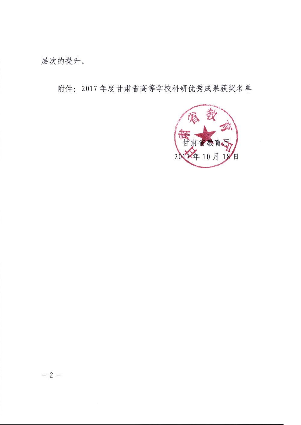 2017年度甘肅省高等學(xué)??蒲袃?yōu)秀成果獎(jiǎng)勵(lì)證書