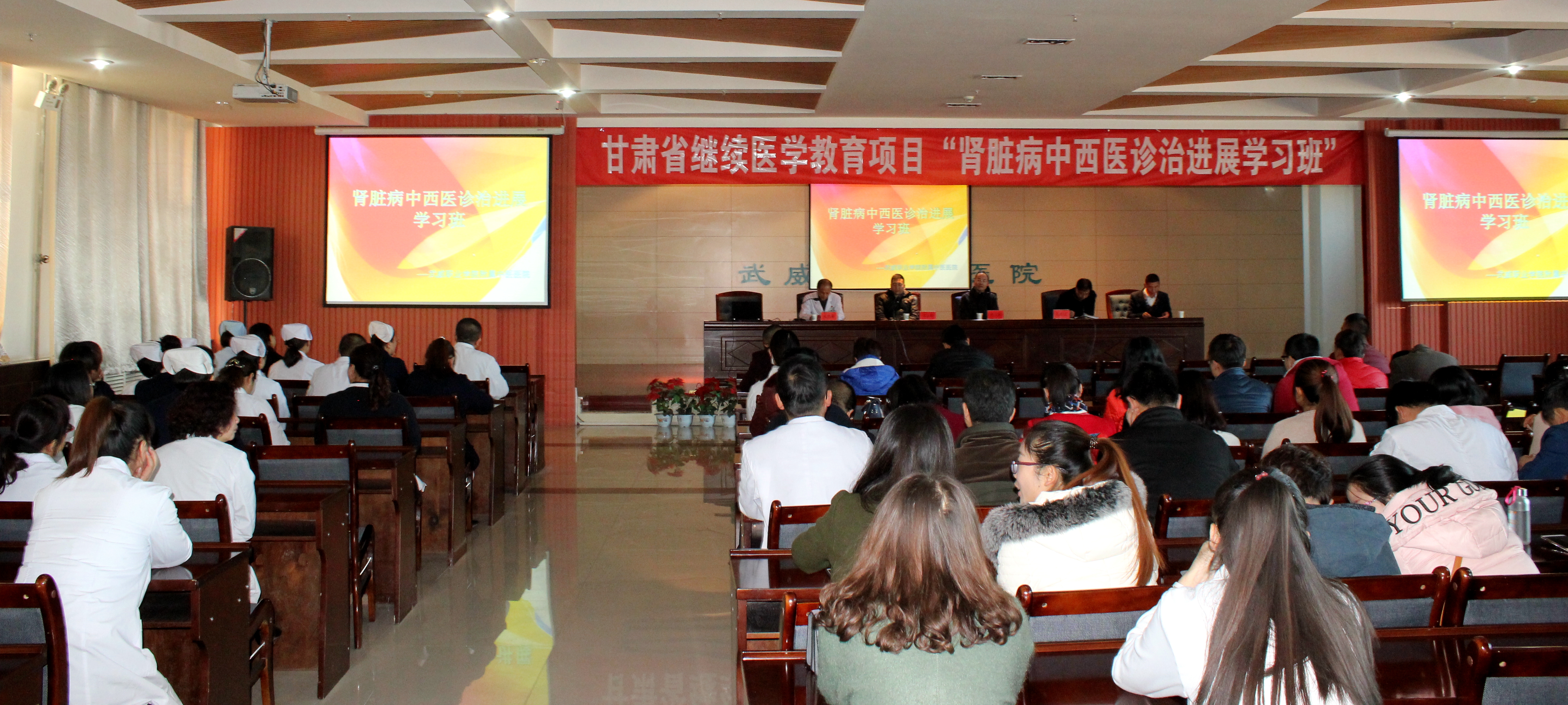 醫(yī)院200余名醫(yī)務(wù)工作者參加了培訓(xùn)學(xué)習(xí)。副院長(zhǎng)宗武三、毛照海出席了開(kāi)班儀式。甘肅省人民醫(yī)院腎臟內(nèi)科主任、主任醫(yī)師馬志剛教授和腎臟內(nèi)科副主任、主任醫(yī)師黃文輝教授為大家作學(xué)術(shù)講座。
